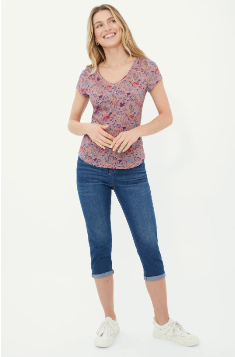 This charming Mantaray T-shirt brings artistic expression to your casual wardrobe with its distinctive sketchy floral print. Crafted from slub cotton for that perfect lived-in feel, it offers both comfort and character for everyday wear. The flattering V-neckline adds a feminine touch whilst the curved hem creates a figure-enhancing silhouette.