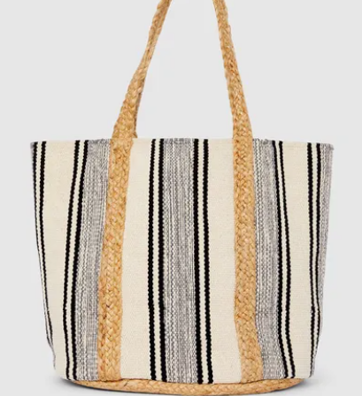 - Camelia canvas shopper bag from Mantaray. Designed with braided raffia trims and enough room to fit all your beachside essentials comfortably, this bright patterned shopper bag is the ideal summer companion.